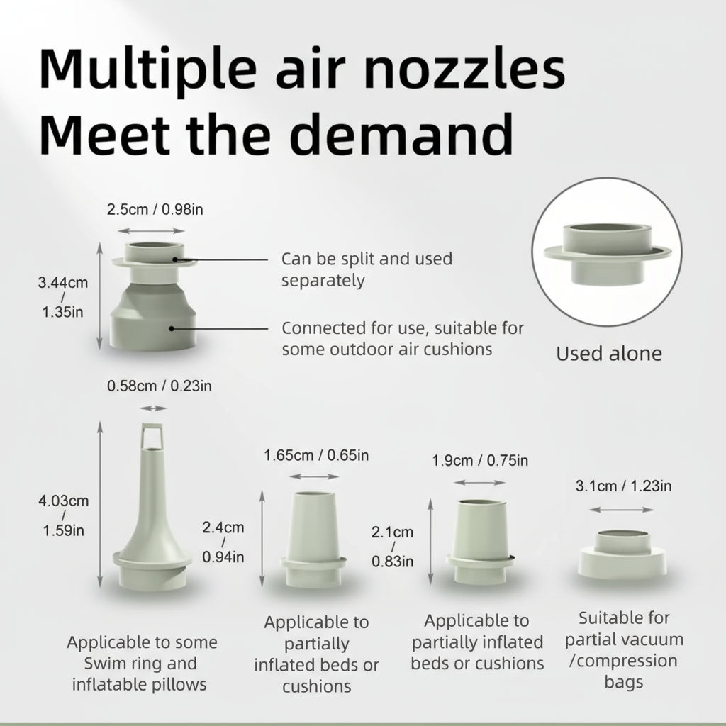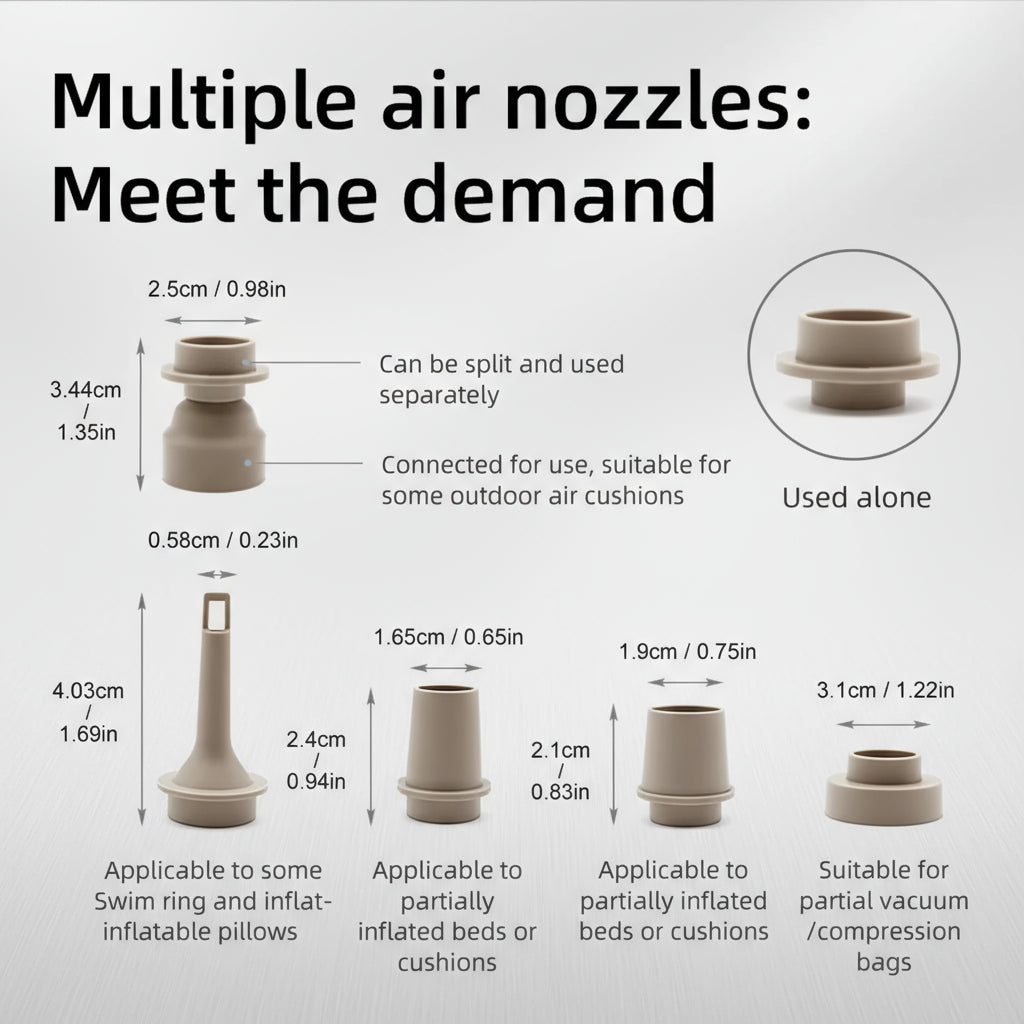 ✅ Universal fit: Comes with multiple nozzles to suit most inflatable products.